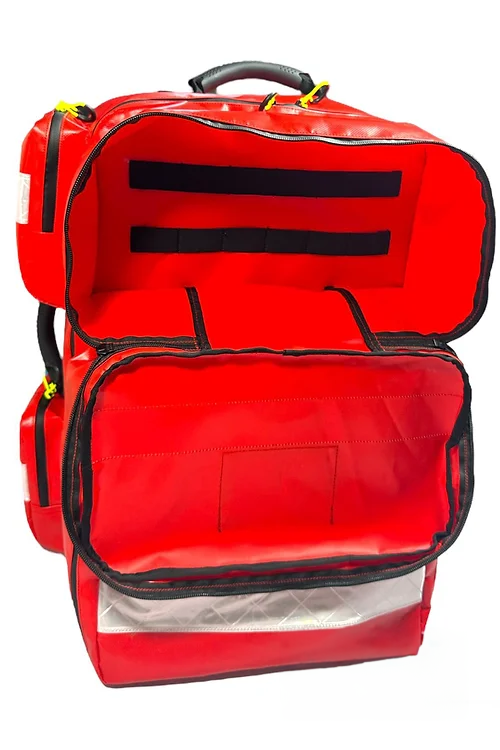The culmination of 35 years of pre-hospital experience has resulted in the creation of this bag, which is large enough to carry enough equipment for critical care teams, whilst also being adaptable down to first aiders. It has a large front pocket, capable of housing an AED, with a smaller pocket above which is perfect for quick access to diagnostic equipment.